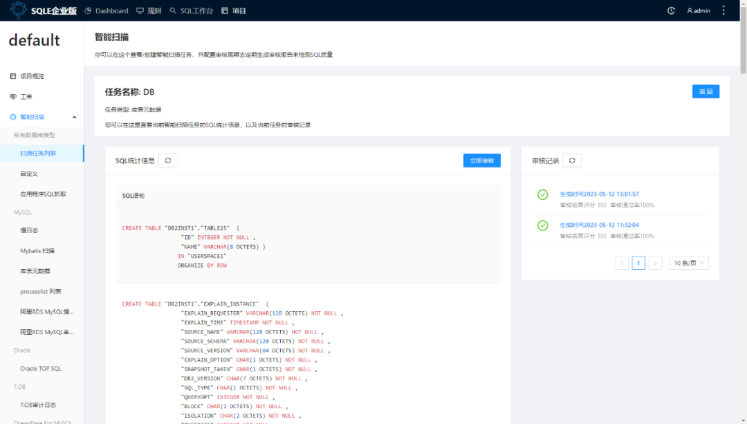 2. 用户可在扫描任务详情查看当前扫描任务采集的 SQL,点击”立即审核“生成扫描任务报告。