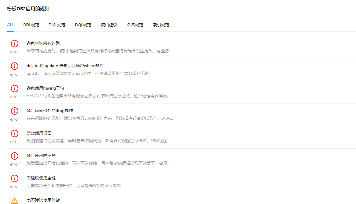 4. 支持 DB2 更多审核规则