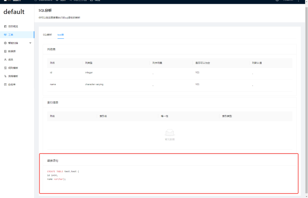 本期完善了 PostgreSQL 数据源下的 SQL 分析支持,除原有的列信息及索引信息外,新增了建表语句的展示,用户可在此查看完整的建表语句,帮助 DBA 进行SQL 优化。以下是一个简要的示例: