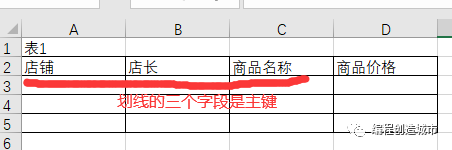 从这个表中,我们可以看出,商品价格是非主属性,店铺、店长、商品名称是主属性(主键),我们可以根据三个字段作为主键去确定找到某个商品的价格。