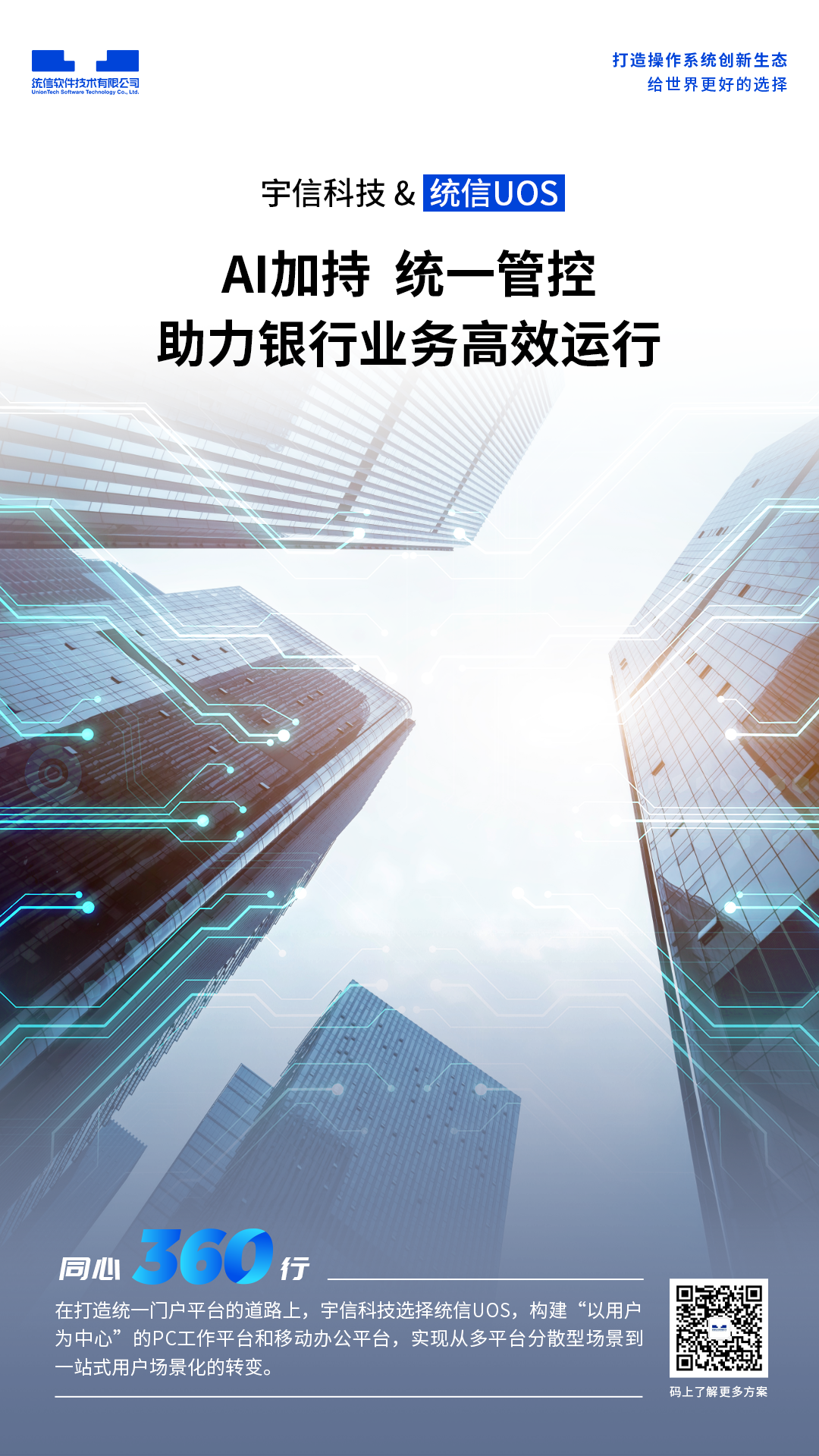 作为国内金融IT的龙头企业,在打造统一门户平台的道路上,宇信科技选择统信UOS,构建“以用户为中心”的PC工作平台和移动办公平台,真正让业务人员从系统中“解脱”出来,让工作更高效。