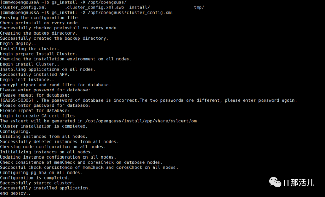 gs_install -X /opt/opengauss/cluster_config.xml