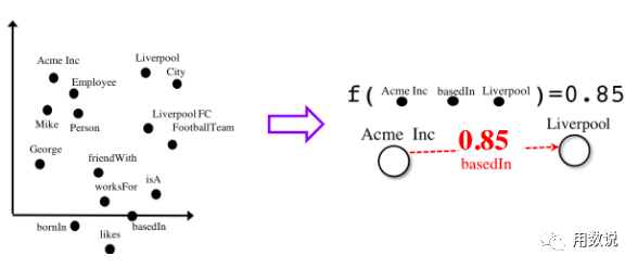 在上面的知识图谱中,某些实体之间并没有通过某些关系直接联系起来,例如,没有显示 "Acme Inc "和 "Liverpool "如何通过 "basedIn "关系联系起来的信息。AmpliGraph将上述KGE与一些评分函数相结合,对新的链接进行预测。