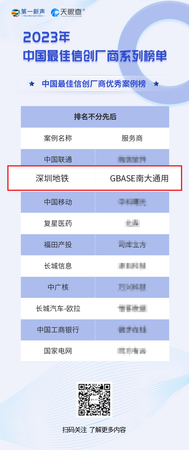 近日,国内知名专业媒体“第一新声”联合“天眼查”平台,发布“2023年中国最佳信创厂商系列榜单”,GBASE南大通用凭借多年来在信创领域的优异成绩分别入选“中国最佳信创厂商TOP50”、“中国最佳信创数据库厂商”、“中国最佳信创厂商优秀案例榜”三项榜单,再次验证了企业专注创新、服务国家战略的实力与成绩。
