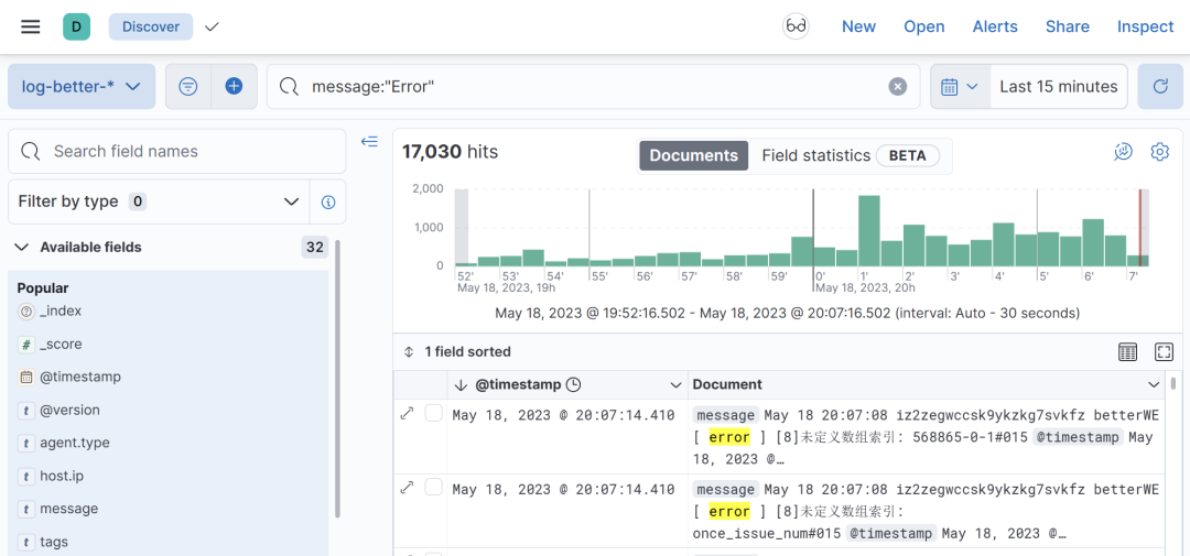 搭建ELK环境后,登录Kibana网页查看实时收集的日志,通过日志来源、关键词、记录时间、请求ID、请求IP等条件,快速搜索查要找的日志。