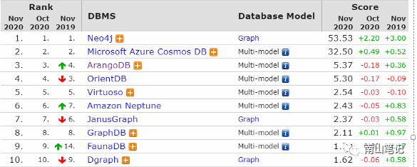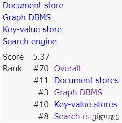 基于图的方式表达和探索现实世界的关系,比较直接、自然和易懂。传统的关系数据库,可以有效的解决两两关系,但是当需要计算多重关联、知识图谱和社交关系等往往是有心无力。这个时候就需要图数据库出厂,以下是图数据库在db ranking的排名情况: