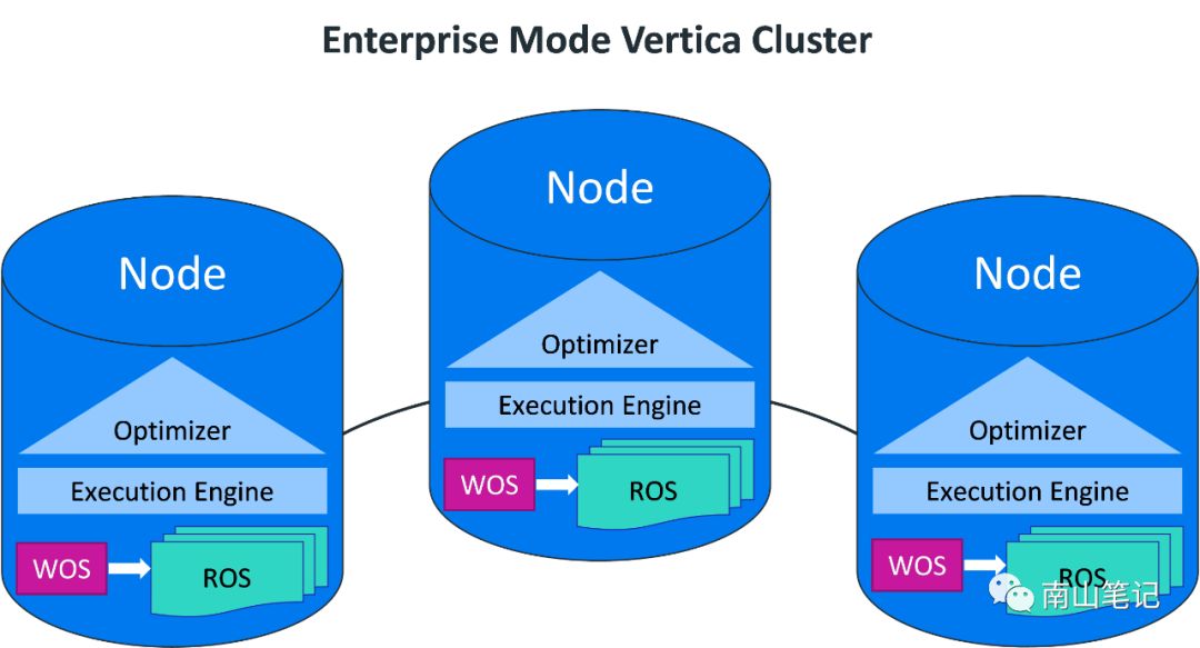 Vertica支持基于企业级部署和EON MODE两种部署方式,前者数据分别存放在集群的各个节点,后者则采用集中共享的方式,存储数据。