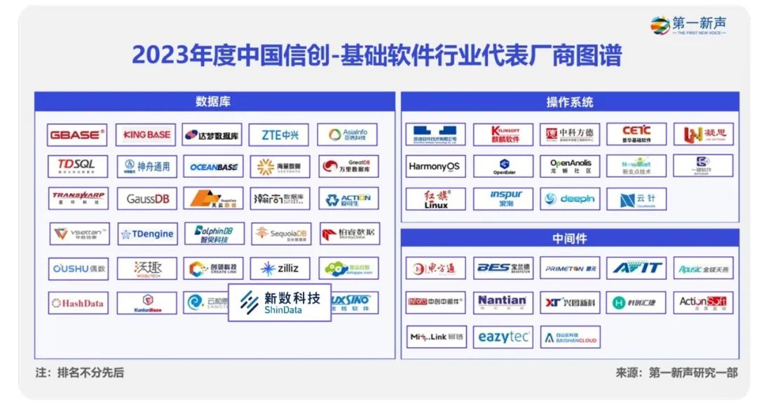 ▲图 | 新数科技入选第一新声「2023年中国信创-基础软件行业代表厂商图谱」