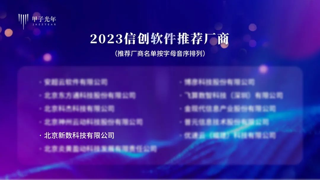 ▲图 | 新数科技入选甲子光年「2023年信创软件推荐厂商」