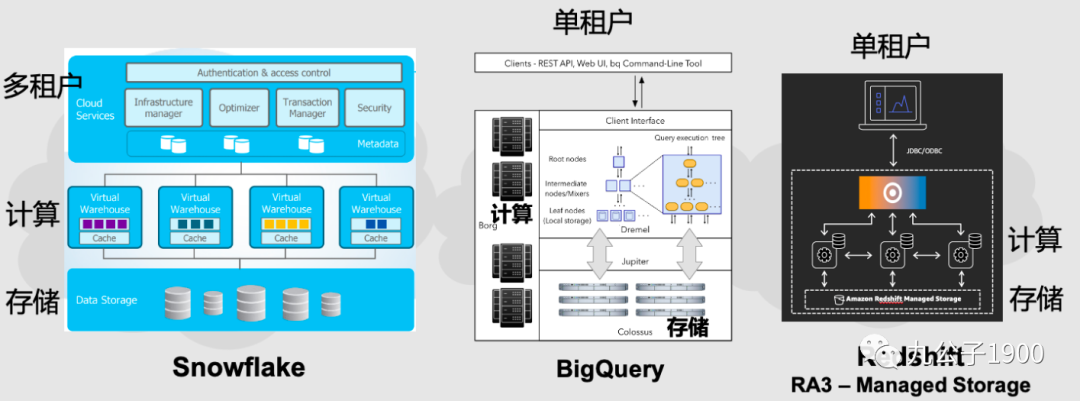 很多文章都提到公司的存算解耦创新,只看架构图觉得redshift和bigquery也是存储与计算分离的模式。所以是不是Snow的架构更加彻底呢?redshift里计算器集群需要leader节点与计算节点通信,bigquery里类似的部分是Dremel,也需要枝干节点与叶子节点通信,而从架构图看Snow的计算层只有一层。