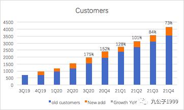 截止2021年1月底,公司客户数达到4139,增速依然保持在73%的高位。(相比之下,截止2020年7月31,Redshift客户数13826,过去12个月增速2.66%;BigQuery 9184,增速30.9%。)