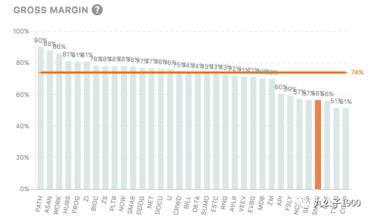 公司的成立就是出于成本更加透明,鼓励用户根据实际需求消耗付费的目的,而成本端则是完全基于现有云平台提供的基础设施,盈利空间相对更加有限,横向比较毛利率在SaaS公司里相对较低,纵向比较一直在持续提升,随着客户数增多,相对供应商的议价权有望提升,进一步降低成本。