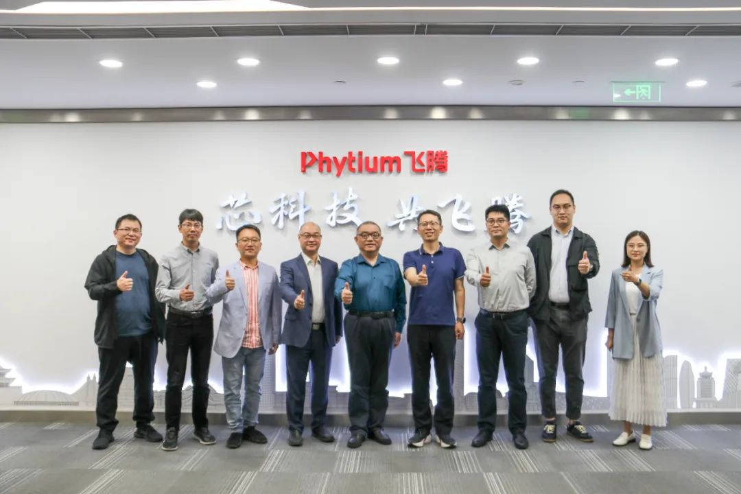 近日,统信软件副总经理、生态中心总经理朱靖,终端操作系统产线总经理王耀华,服务器操作系统与云计算产线总经理孟杰一行到访飞腾,与飞腾公司副总经理郭御风,软件技术方案部总监刘勇鹏等开展座谈交流。