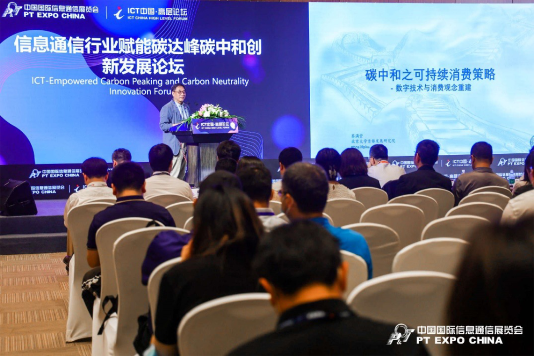 蔡满堂发表了题为《碳中和之可持续消费策略:数字技术与消费观念重建》的主旨演讲。在演讲中,他提到要发挥数字技术在社会网络中的作用,构建权威的个人绿色消费“标签”,推动可持续消费观念重建,实现低碳绿色消费,为助力整体碳排放水平的降低提供了一个全新的视角。