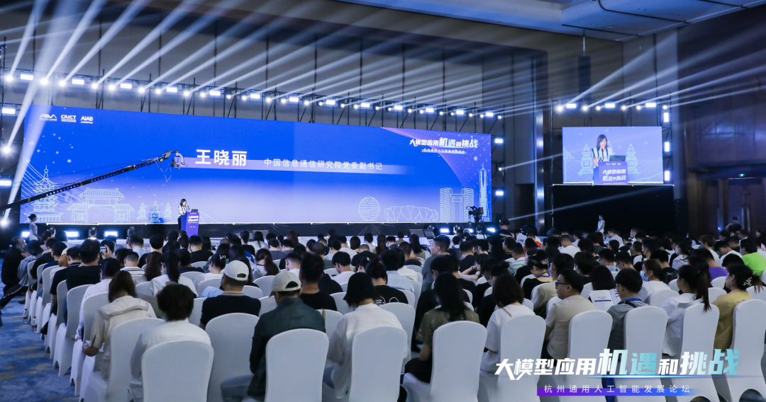 2023年5月30日,以“大模型应用机遇和挑战”为主题的杭州通用人工智能发展论坛在杭州未来科技城举行。工业和信息化部科技司副司长任爱光、杭州市人民政府副市长孙旭东、浙江省经济和信息化厅总工程师李永伟、中国信息通信研究院(以下简称“中国信通院”)党委副书记王晓丽出席论坛并致辞。中国信通院副总工程师、中国人工智能产业发展联盟副秘书长王爱华主持开幕式。