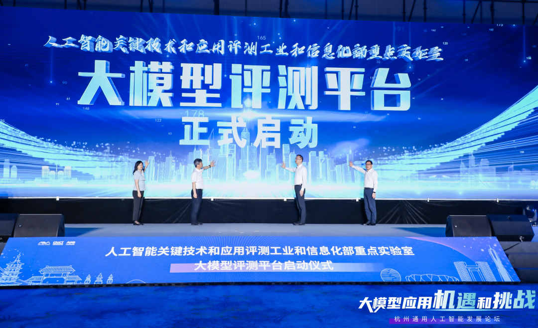论坛上,相关领导出席并参与了人工智能关键技术和应用评测工业和信息化部重点实验室大模型评测平台(杭州)启动仪式、2023 AIIA杯巡回赛启动仪式。