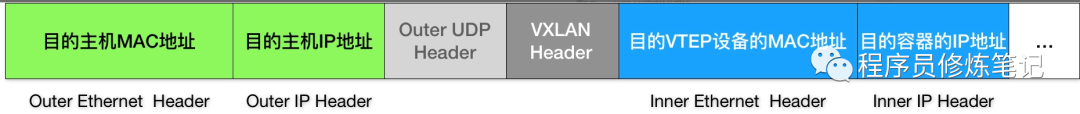 UDP包是一个四层数据包,因此Linux内核会通过FDB表找到目的设备VTEP对应宿主机的IP,紧接着在IP包前面添加二层数据帧头,里面包含了目的宿主机的MAC地址(该MAC地址是由宿主机通过ARP自学习获取,和Flannel无关)