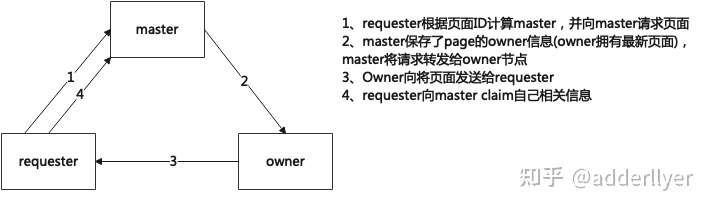 在本地查找page owner(这里的owner是向master注册并拥有该页面的最新版本),找到该页面owner,master将请求转发给owner节点