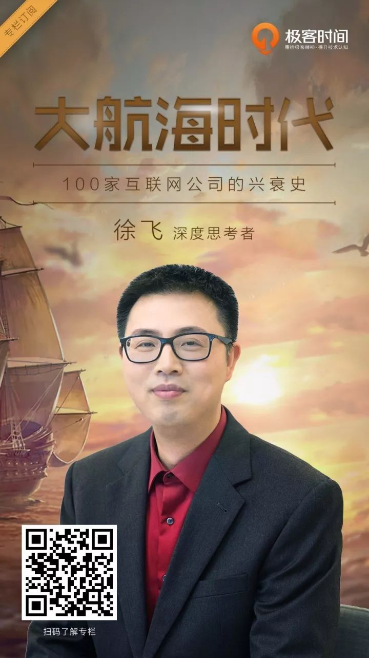 本文摘自徐飞在极客时间 App 开设的付费专栏“大航海时代”,欢迎扫描下图二维码在极客时间给我留言,和我一起讨论。