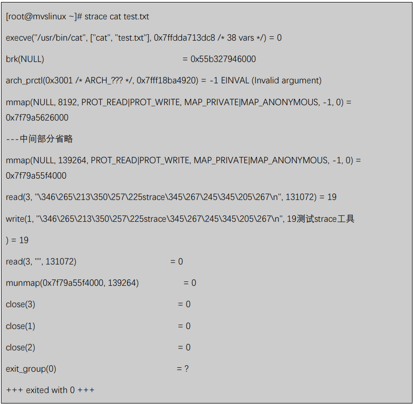 最简单的情况就是使用strace运行指定的命令,直到命令结束。它拦截并记录进程执行的系统调用和进程接收的信号。每个系统调用的名称、参数和返回值都将被显示在标准输出中或可以通过-o选项指定到文件。
