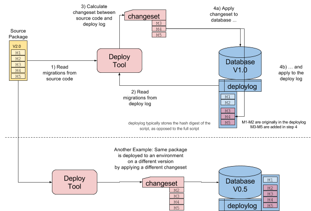 进阶的工具通过与部署日志表进行对比来确定哪些脚本片段需要进行部署,如下图所示
