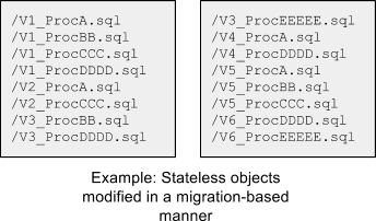 无状态对象可以仅将定义本身存储在文件中,因为它们的完整定义可以针对数据库进行部署。