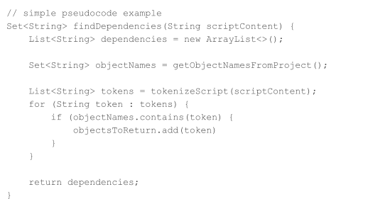 有多种方法可以在脚本中搜索对象名称。我们当前的实现通过空格将脚本分解为标记,然后检查该标记是否存在于对象名称集合中