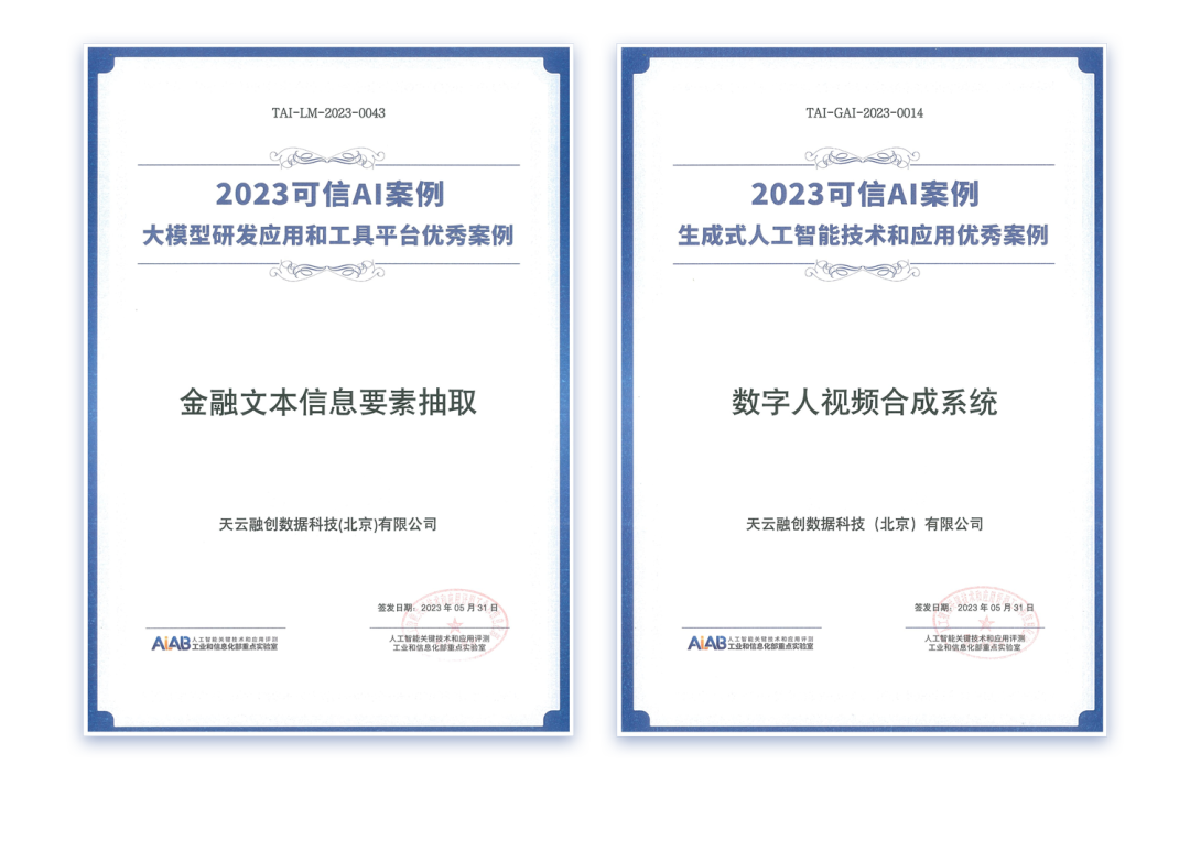 5月30日-31日,由中国信息通信研究院(以下简称“中国信通院”)、浙江省经济和信息化厅、杭州市人民政府及中国人工智能产业发展联盟等主办的杭州通用人工智能发展论坛在浙江杭州举行,研讨大模型基础设施、大模型赋能行业应用、大模型安全可信等产业重点关注问题。为展示当前大模型和生成式人工智能等前沿技术的实际成果,中国信通院在会上发布了「 大模型研发应用和工具平台优秀案例名单」、「 生成式人工智能技术和应用优秀案例名单」 , 天云数据凭借着在人工智能领域的创新探索及应用实践成功入选标杆案例。