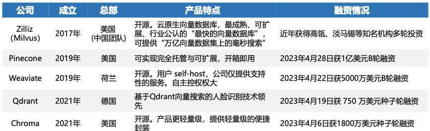 据了解,大模型爆发以来,向量数据库同时也受到投资者的关注,近日至少有四家向量数据库的初创公司Pinecone、Weaviate、Qdrant、Chroma先后获得了融资。