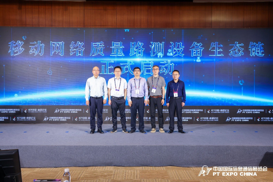 移动网络评测体系是保障移动网络高质量发展的重要基础,路测设备作为移动网络评测的执行手段,是移动网络高质量发展生态链的重要一环。为了进一步完善生态链发展,促进路测设备技术不断创新,本届论坛由移动网络质量领航方阵携手产业各方代表,倡议共同推动移动网络路测设备创新发展,加速移动网络高质量发展进程。移动网络质量领航方阵常务副秘书长秦岩、诺优信息技术(上海)有限公司总监孙金伟、北京万思维通信技术有限公司总经理蒙惠明、深圳健路网络科技有限责任公司CTO杨毅、北京华虎兄弟科技有限公司总经理李金平共同发起“移动网络质量路测设备生态链启动仪式”。