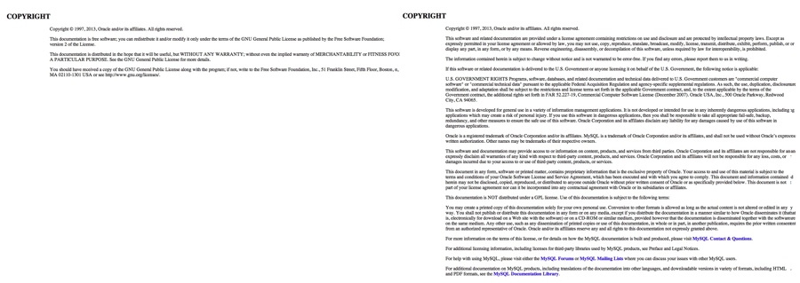 老的手册遵循 GPLv2 许可证(MySQL 5.5.30 或者更早版本):