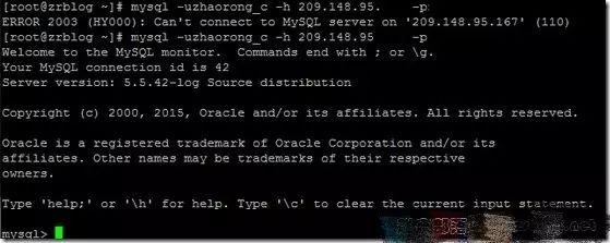 mysql -uzhaorong_c -h 192.227.240.* -p*****