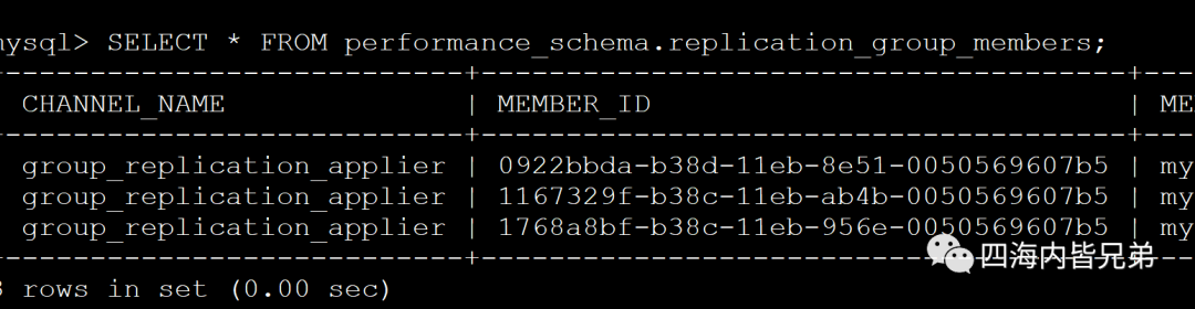 SELECT * FROM performance_schema.replication_group_members;