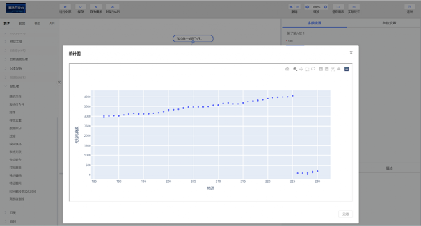 把待分析训练的QAR数据上传到国双智慧航司系统,通过统计分析算子中的可视化图表,来观察QAR数据。如下便是算子运行后能观察到的无线电高度的走势、标准气压高度和修正后海平面高度的走势、无线电高度和垂直加速度分布和纵向负荷的数据总括。通过这些数据可以帮助飞行员了解到操作习惯以进行动作校正,确保飞行更加安全。
