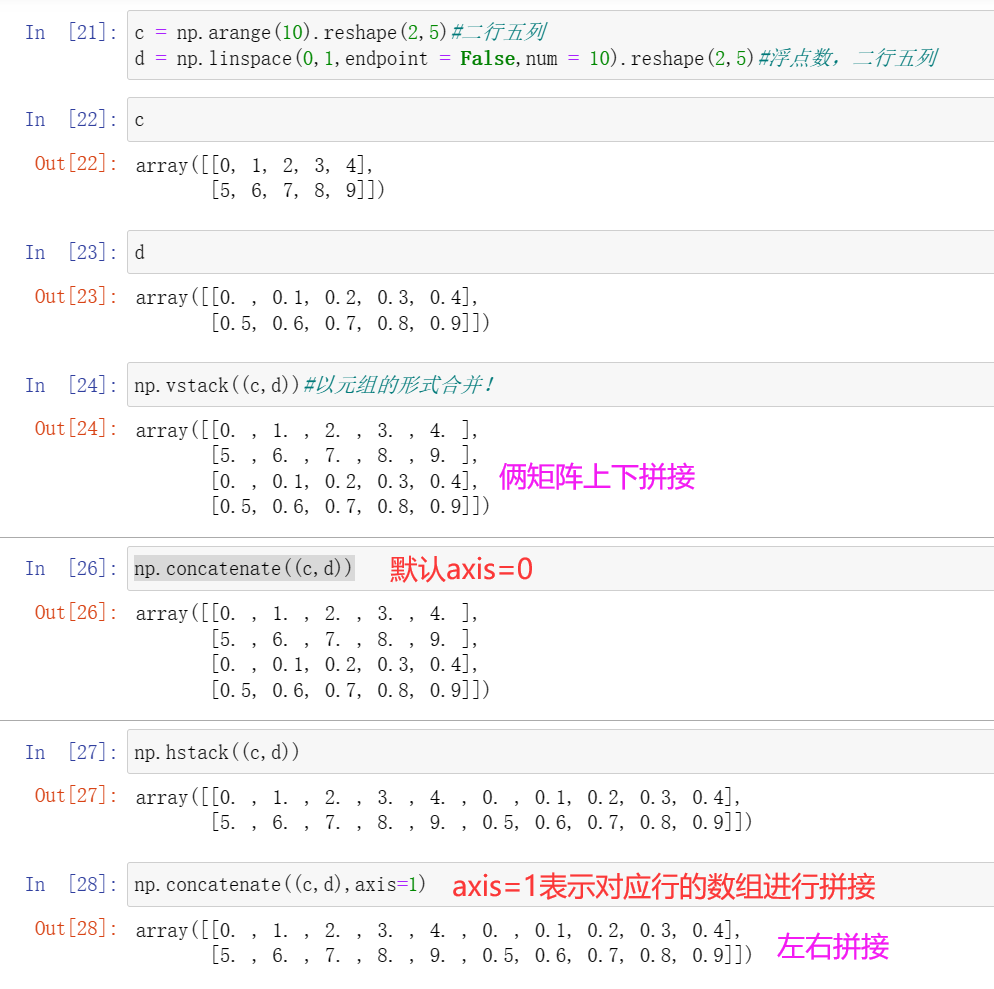 ①np.linspace()【等差】(生成的是浮点数,若需要整型,需要手动指定数据类型--> 'dtype = int')