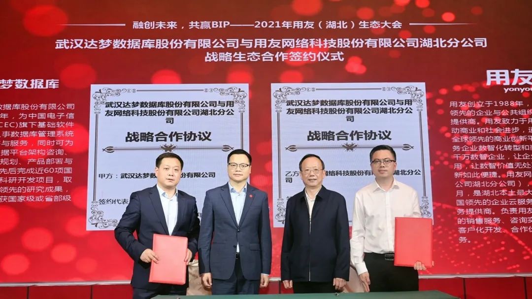 5月13日,以“融创未来 共赢 BIP” 为主题的2021用友(湖北)生态大会在武汉举行,用友网络科技有限公司携手武汉达梦数据库股份有限公司等各领域行业的生态伙伴、云服务厂商、网信产业代表、专家学者齐聚一堂,共话商业创新,共同打造开放的企业云服务新生态。