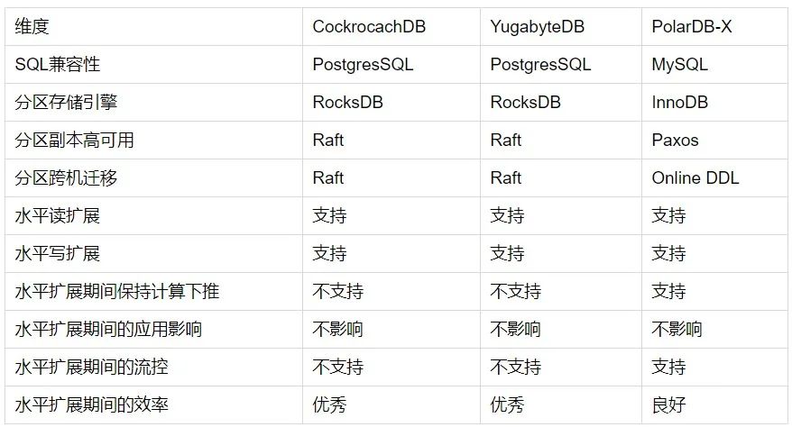 与诸如 CockrocachDB等主流的NewSQL数据库相比,PolarDB-X 的水平扩展方案带有与自己架构紧密相关的特色,以下是 PolarDB-X 水平扩展与其它 NewSQL 数据库 的对比。
