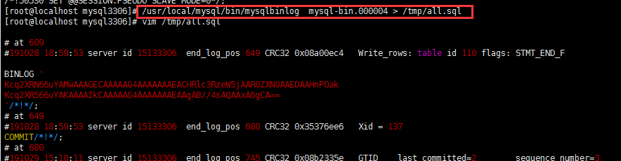 purge binary logs to 'mysql-bin3306.000003'; #日志被purge