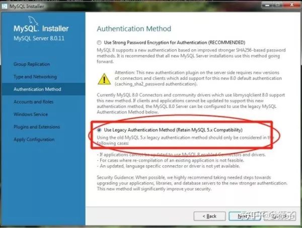 【答】这是因为在安装mysql数据库过程中忘记选择加密方式为下图中红框的地方了。卸载干净mysql数据库后,重新安装mysql数据库后,再使用navicat连接。