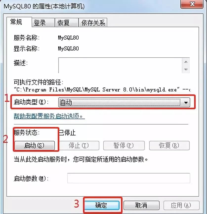 3)在属性里按下图设置,将启动类型选择为“自动”,表示以后电脑重启这个服务都会自动启动。在“服务状态”下点击“启动,将服务启动起来。然后点击确定。
