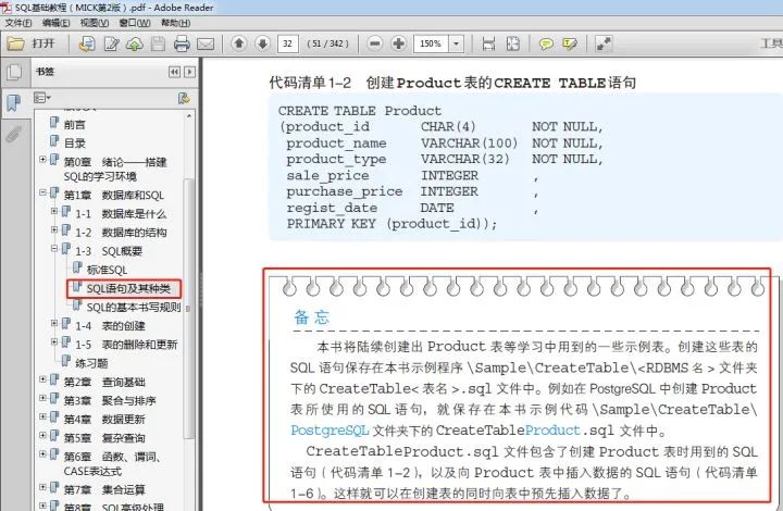 前面我们演示了创建数据库、在哪写sql语句、导出sql脚本文件,导入sql脚本文件,知道了sql脚本文件是怎么来的。现在我们回到Mick《sql基础教程》中的第1章的1-3《SQ概要:sql语句及其种类》(对应书里第32页)。