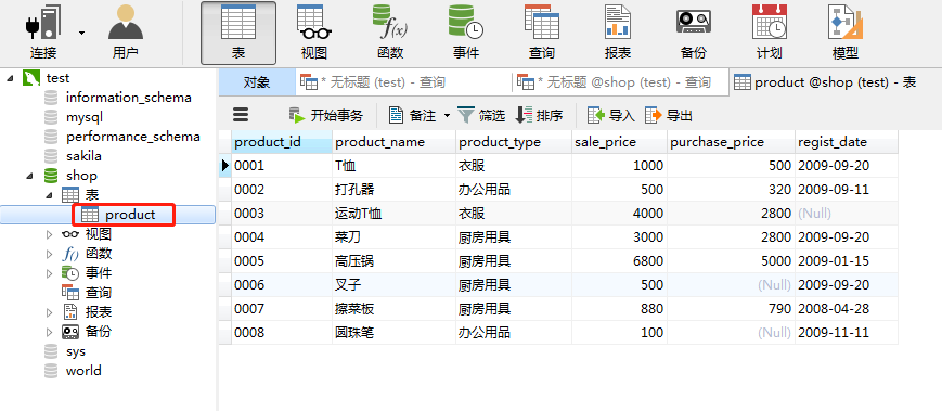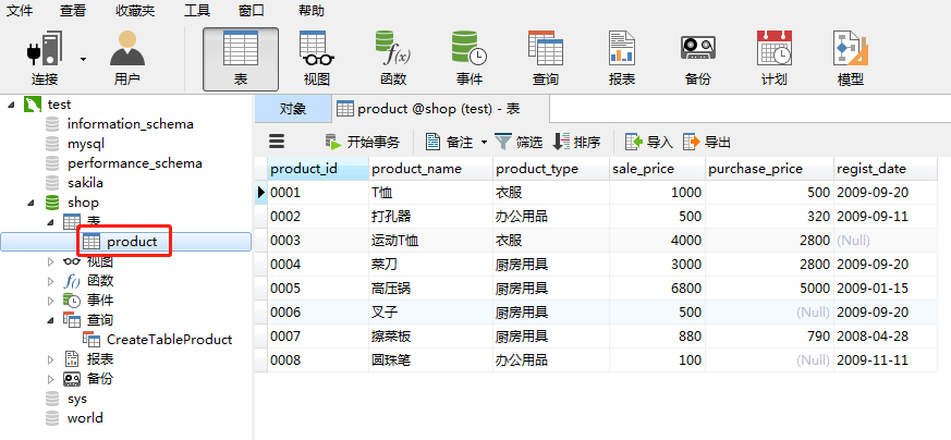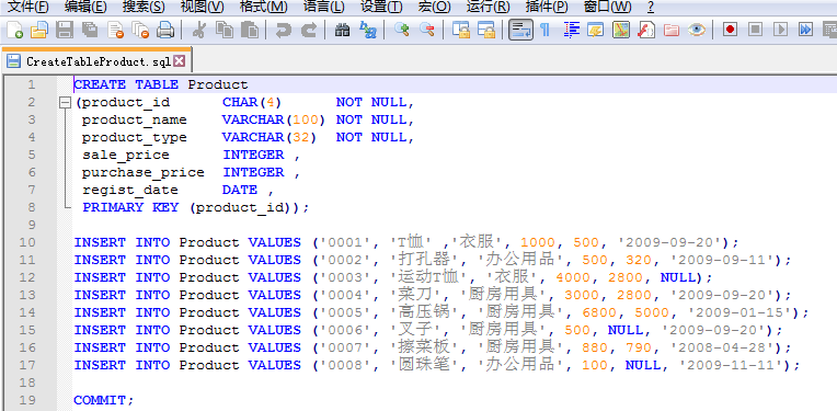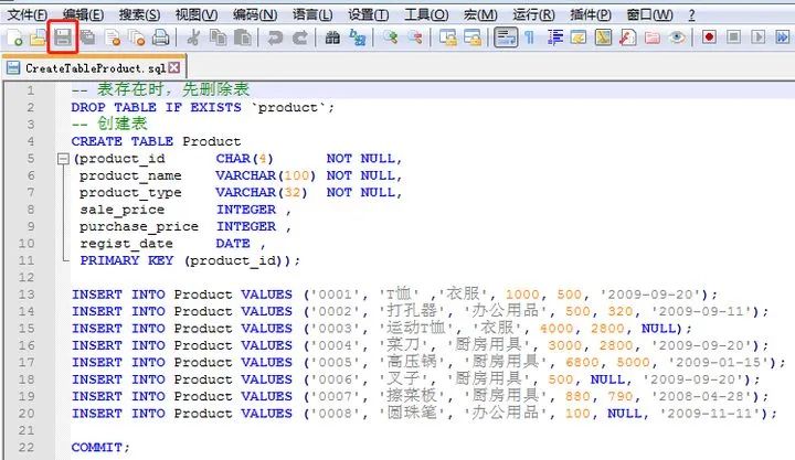 我们看如何把书中说的sql脚本文件(CreateTableProduct.sql)导入数据库里。