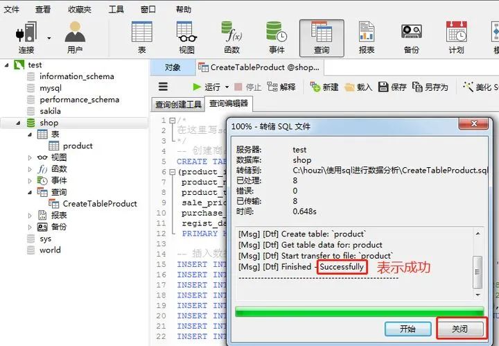 导入成功后,点击关闭。刷新数据库可以看到导入的数据。