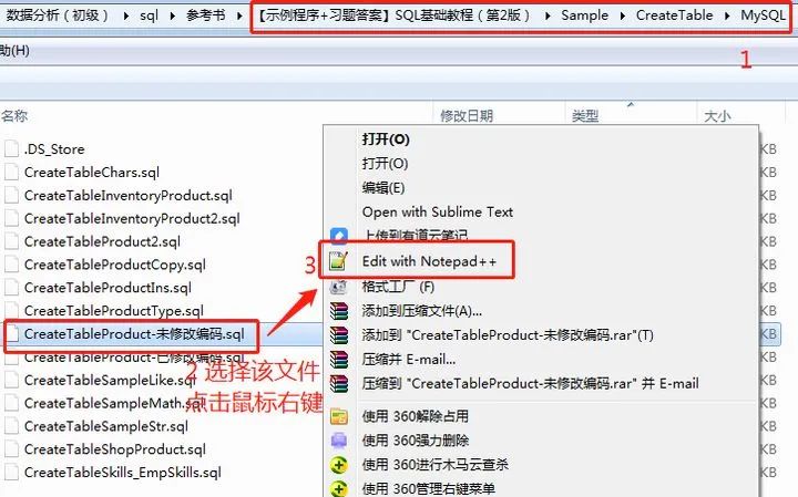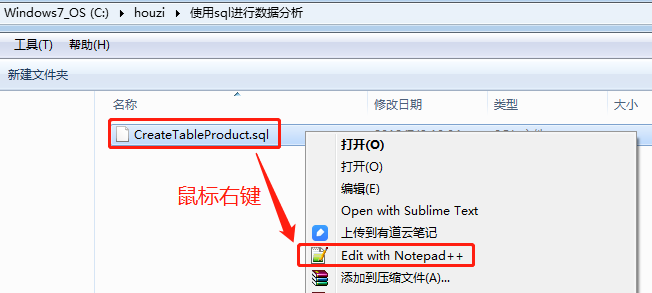 我们使用软件notepad++打开sql脚本文件(windows用notepad++,在mac上可以用sublime text),没有这个软件的去官网下载一个,这个软件可以打开各种类型的文件,是技术学习的必备工具。