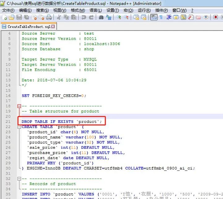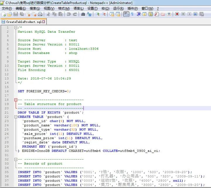 用notepad++打开sql脚本文件,瞅瞅里面有啥。