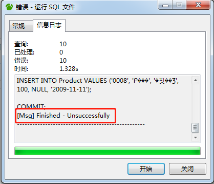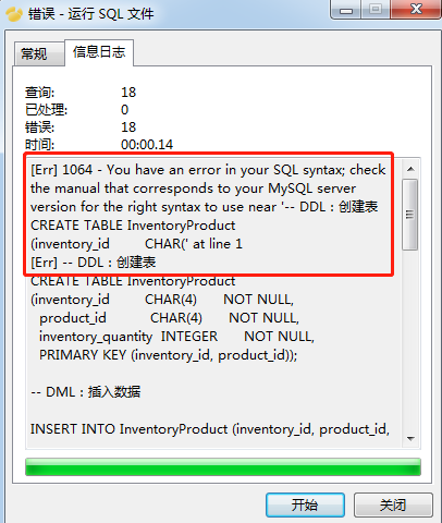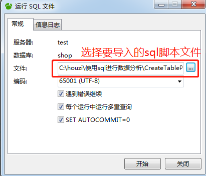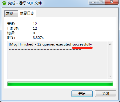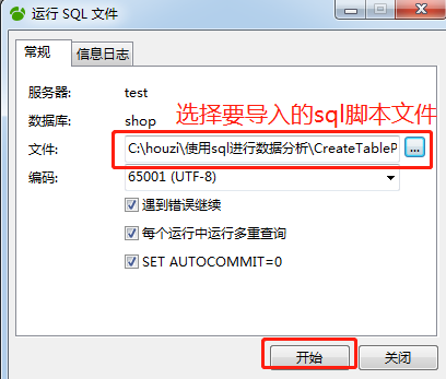 选择要导入的sql脚本文件,其他默认,然后点击开始。