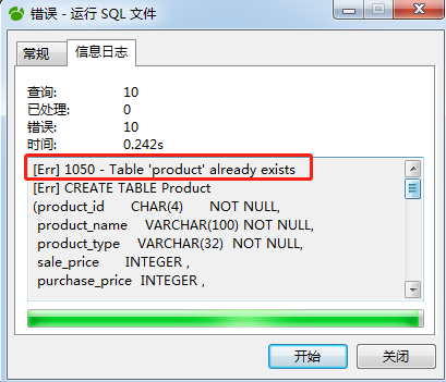 为了防止上面的错误,我一般都会在建立表的sql前面加上这么一句(product是表名,根据你的实际需求,修改成你对应的表名):