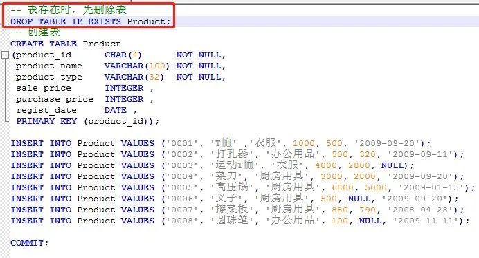 也就是说,如果数据库里已经有这个表了,那么就删除表以后再执行后面的sql语句。