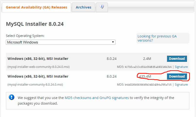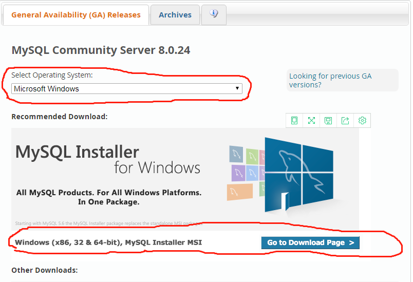 在这里,新手同学还是按照上面所圈的选择,首先是选择:Microsoft Windows,接着下载选择的是MSI版本的。