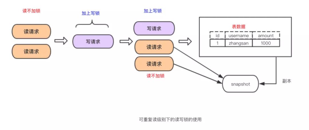 为什么能可重复度?只要没释放读锁,在次读的时候还是可以读到第一次读的数据。
